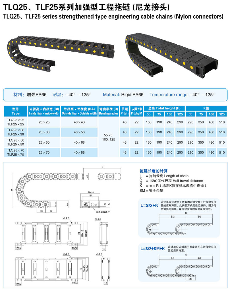 - 產(chǎn)品名稱: TLQ25、TLF25系列加強(qiáng)型工程拖鏈(尼龍接頭)